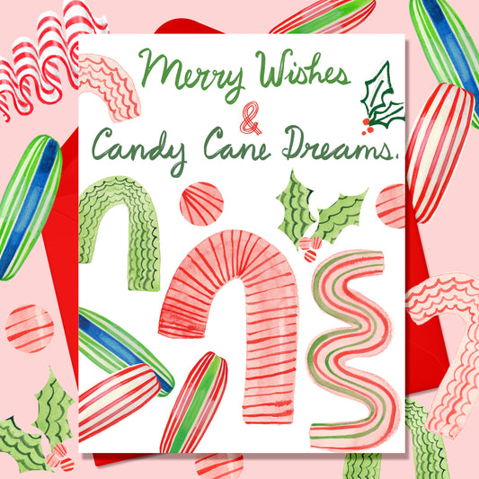 Merry Wishes and Candy Cane Dreams Holiday A2 Greeting Card