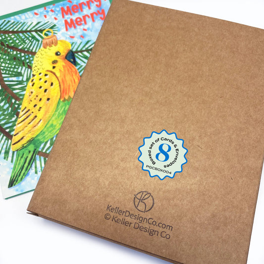 Boxed Set of 8 Cards-Merry Merry Parakeet Ornament Greeting Cards