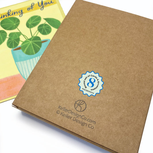 Boxed Set of 8 Cards-Thinking of You Pilea Plant Greeting Cards