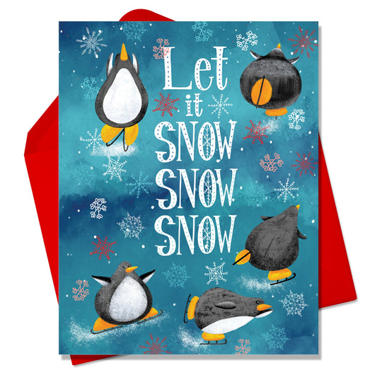 Let it Snow Snow Snow Penguins Greeting Card-Wholesale