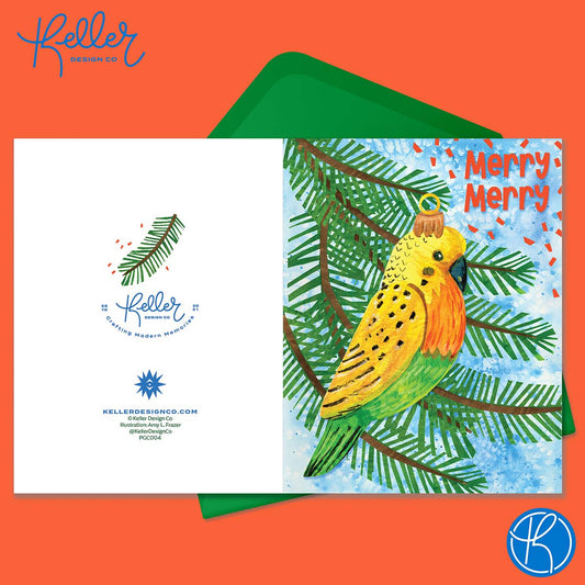 Merry Merry Parakeet Greeting Card-Wholesale