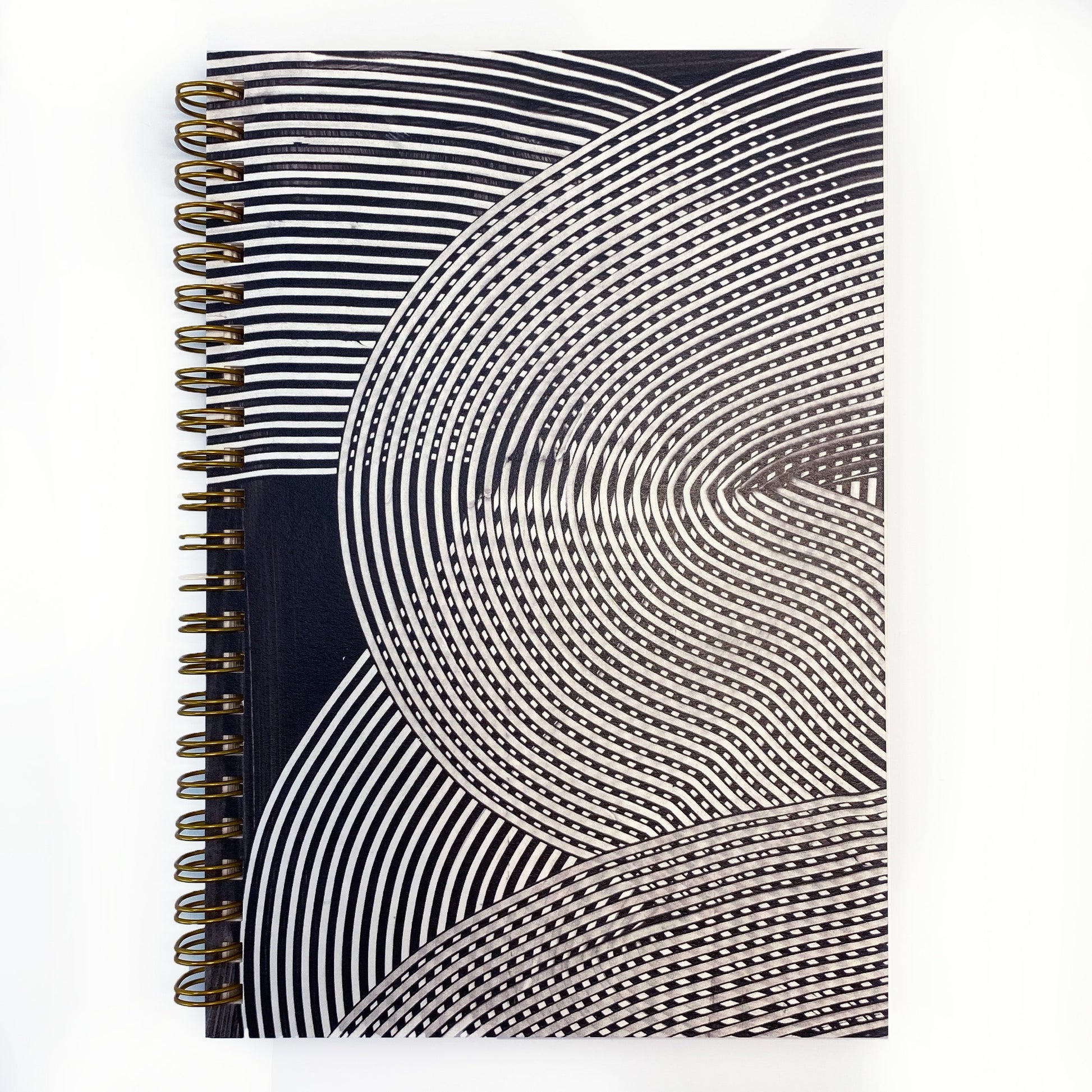 Hand-painted pattern featuring the perfect modern balance of a black and white abstract linear design. Come dream and doodle in this Dream and Draw notebook - your new place for notes, big ideas, sketches, and more!